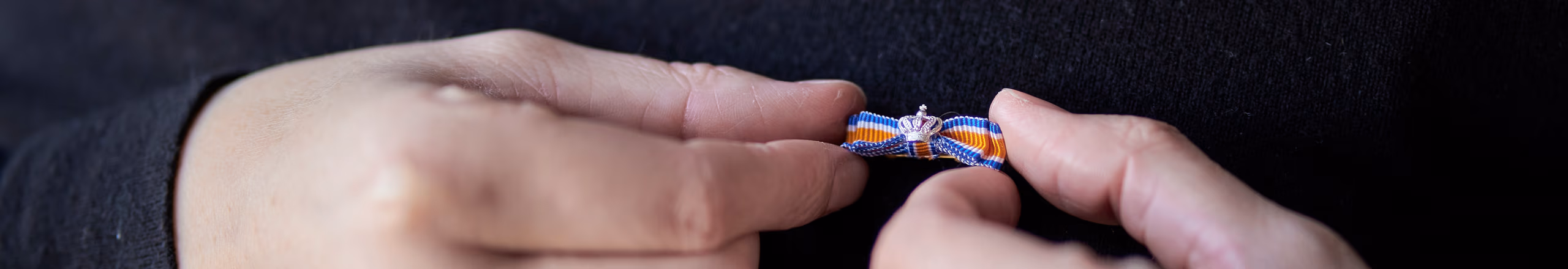 You will receive a lapel badge, or buttonhole insignia, for daily use. This is a small bow in the colours of the decoration ribbon, representing the order in which you have been decorated. Depending on the decoration, this bow has a small crown or rosette.